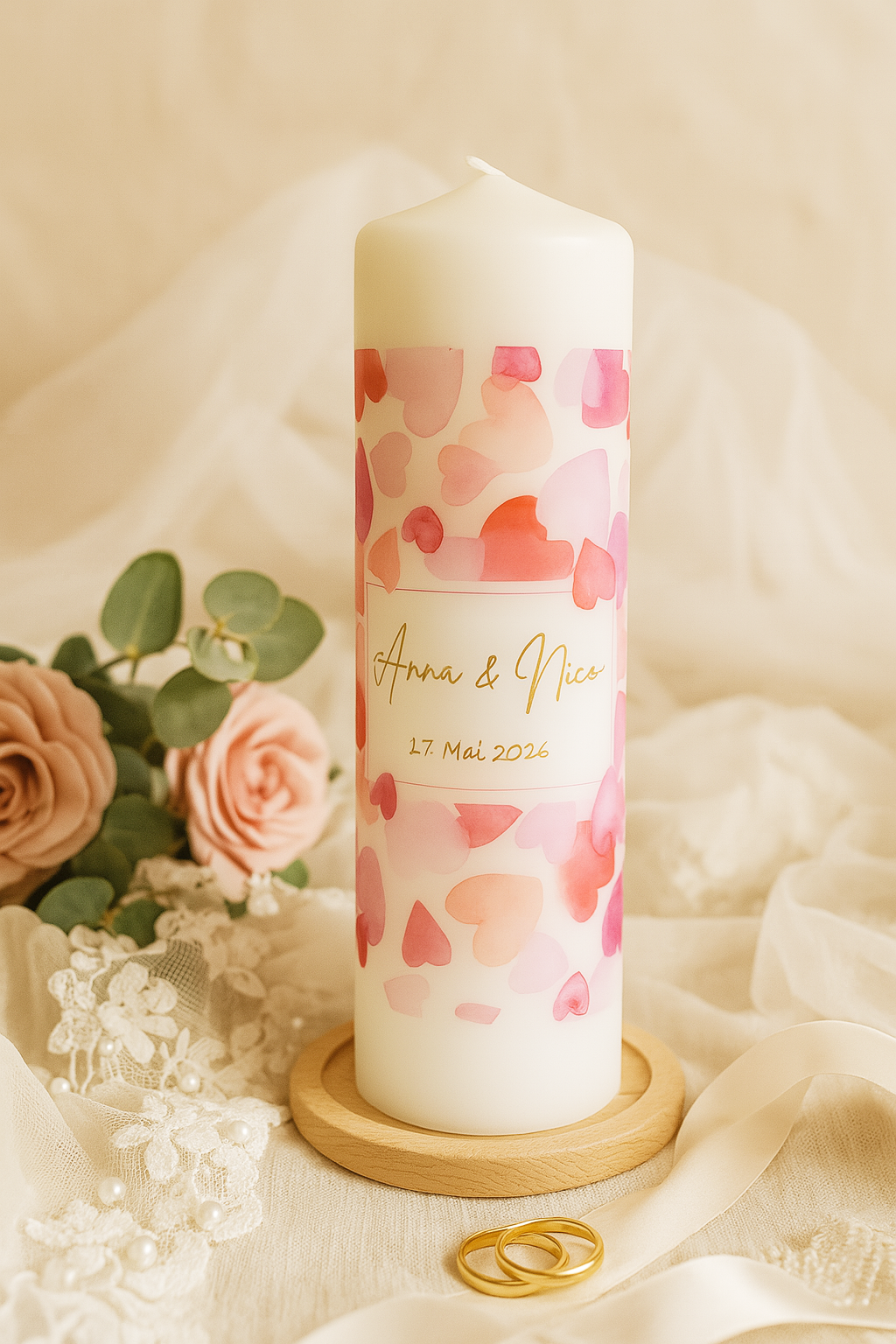 Kerze mit Aquarellherzen – Liebevoll personalisiertes Highlight