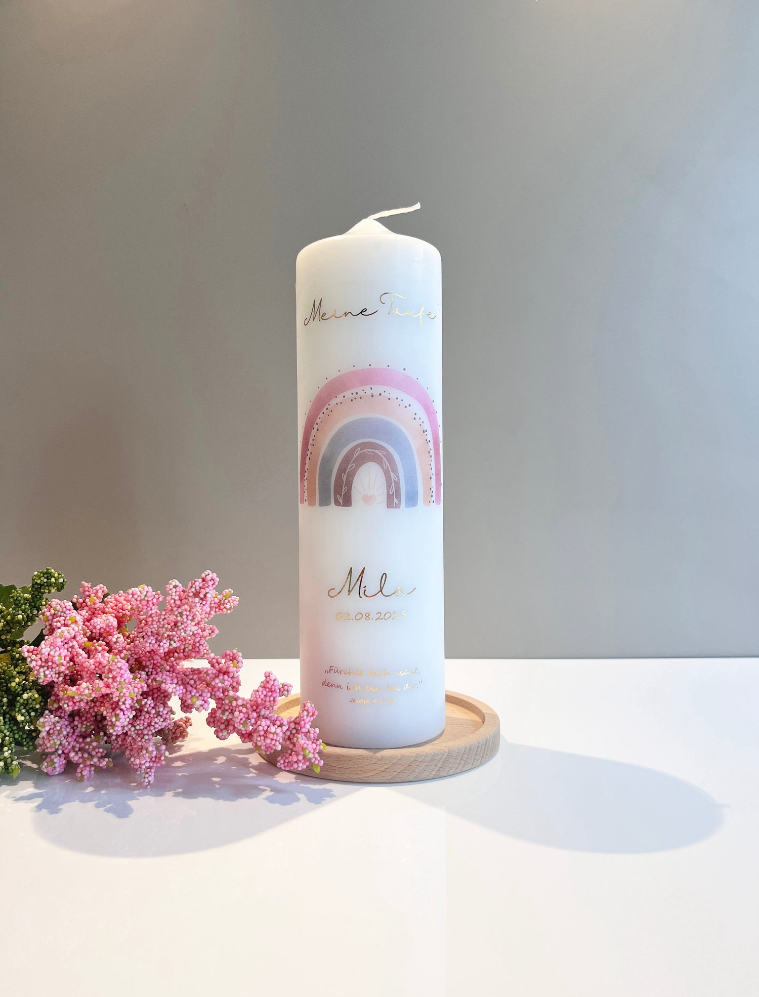 Unsere handgefertigten Taufkerzen sind mehr als nur ein schönes Accessoire – sie sind ein symbolträchtiges Andenken an einen ganz besonderen Tag. Mit liebevollen Details personalisierbar, begleiten sie den Täufling als Lichtzeichen auf seinem Lebensweg. Ideal für Taufe, Geschenk und bleibende Erinnerung.