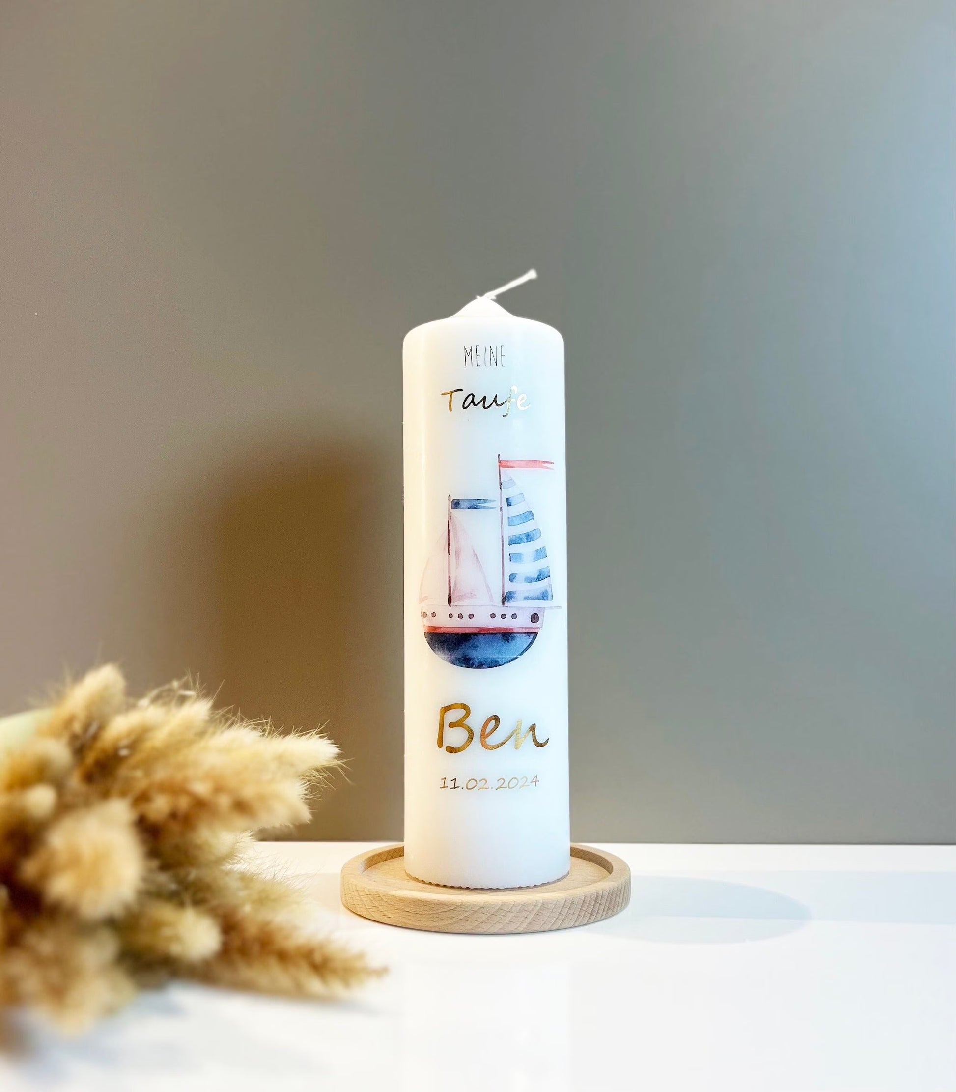 Taufkerze „Segelboot“ – maritim, symbolstark & personalisierbar