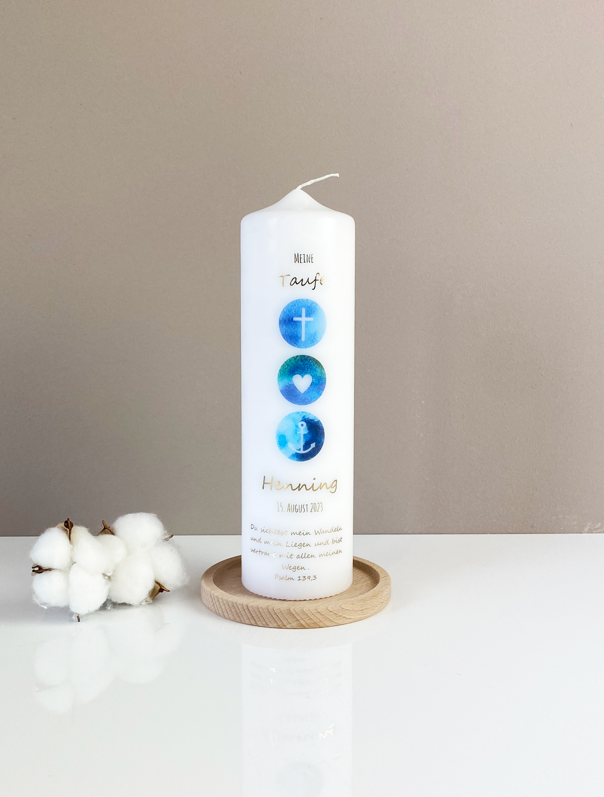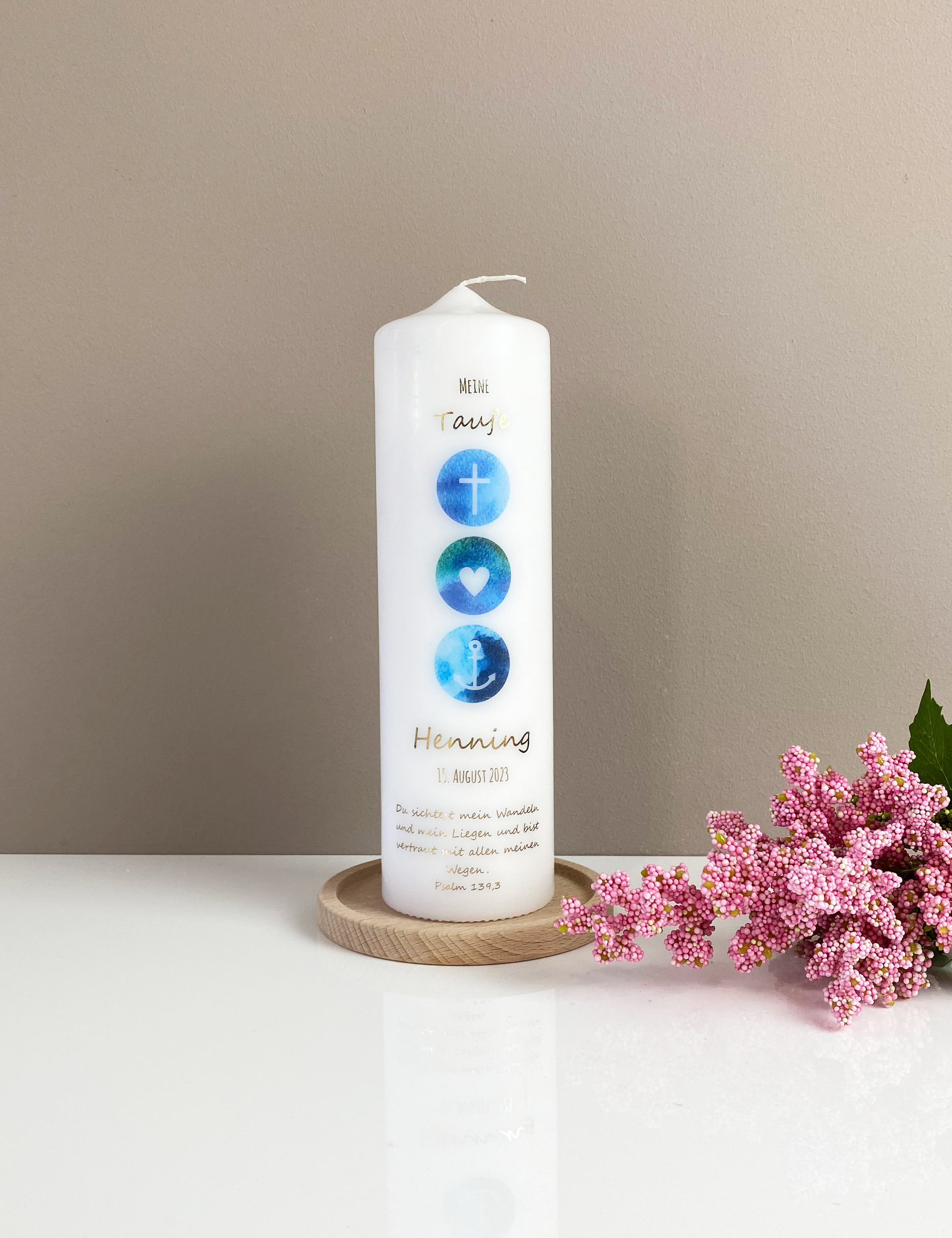 Die Symbolik der Kerze ist besonders bedeutungsvoll für den Taufakt. Der Glaube steht für das Vertrauen an Gott und seine Liebe, die Liebe symbolisiert die Verbundenheit zwischen dem Kind und seiner Familie und die Hoffnung repräsentiert das Vertrauen auf eine glückliche Zukunft für das Kind.